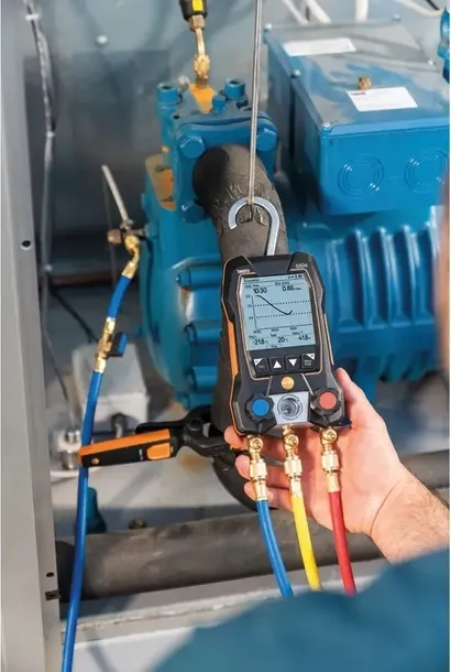 Dzięki temu zestawowi będziesz gotowy do natychmiastowego rozpoczęcia pomiarów w zakresie uruchomienia, serwisowania i konserwacji systemów chłodniczych, klimatyzacyjnych oraz pomp ciepła: w komplecie otrzymasz elektroniczną oprawę zaworową testo 550s Bluetooth z 2-drożną baterią zaworów, dwoma zaciskowymi sondami temperatury na kablu (NTC) i wytrzymałą walizką transportową.